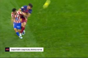 根据西班牙足协今早公布的回放录音,VAR团队分析道:“在我看来,这是巴萨球员正常触球的动作,是比赛中正常的动态。他触球后,自然而然地与马竞球员发生了身体接触。”主裁马特奥·布斯克茨·费雷尔观看回放后,同意了VAR团队的解释。主裁说道:“好的,巴萨球员控制球权后,踢了一下球,然后踩了上去。这是正常的动作。”