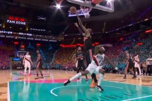 湖人vs掘金詹姆斯被肘击