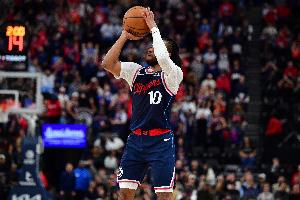 快船后卫加兰上半场依旧有稳定发挥,进攻和组织都做得不错,并且在半场结束前打成一次2+1。